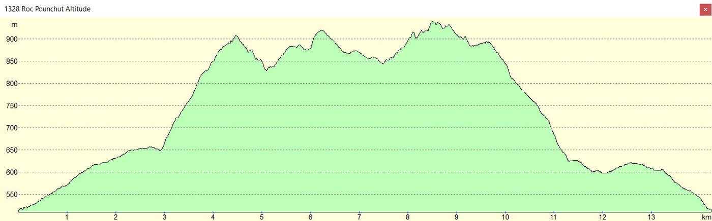 Trace gpx : 1328 Pic de Mède - Roc de Naudine - Roc Pounchut