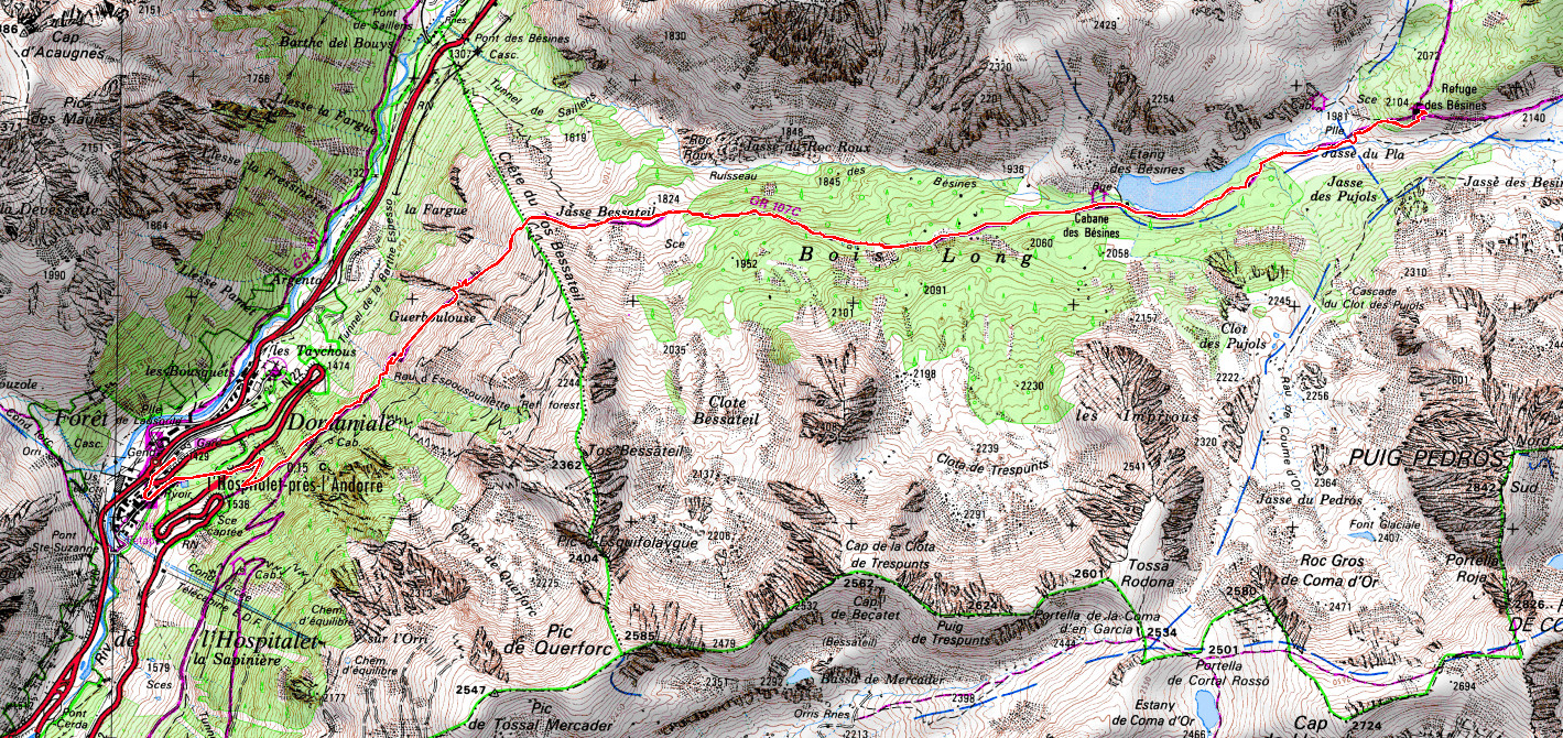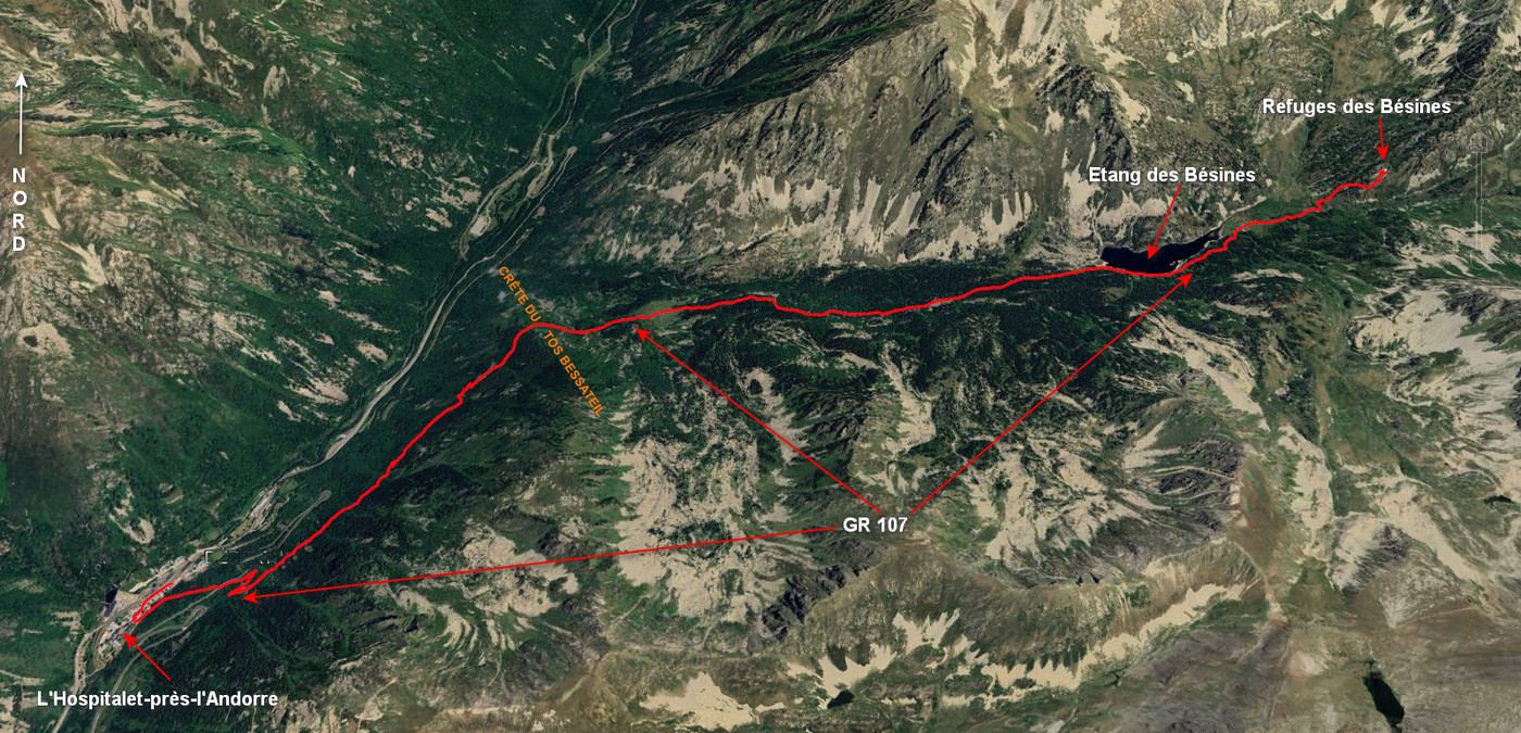 De l’Hospitalet-près-l’Andorre, prendre le GR 107 en direction du refige des Bésines. L’itinéraire, balisé et se déroulant sur un bon sentier, ne demande pas de commentaire particulier.