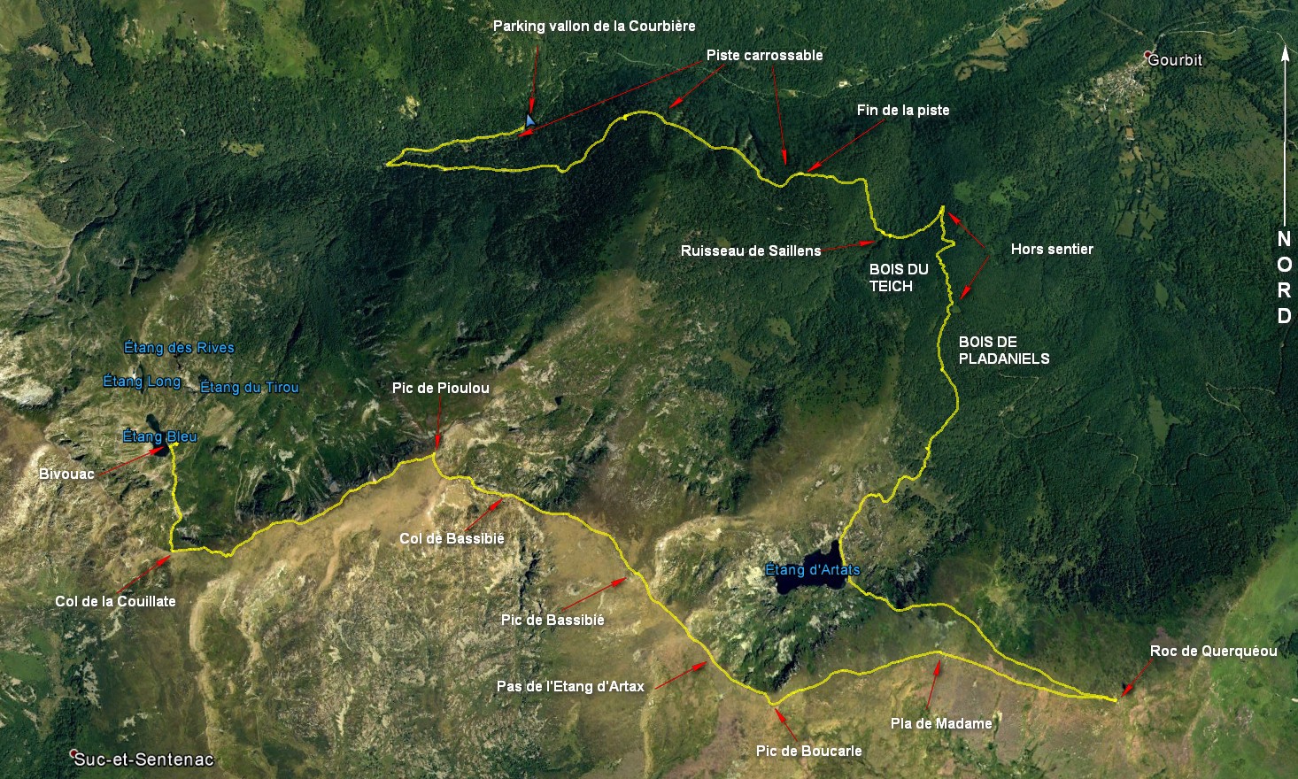 Trace gpx : 862 Etang bleu - Pic de Pioulou - Courbière