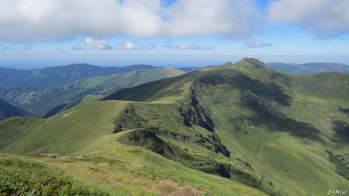 De l’Etang Bleu rejoindre le Col de la Couillatte, et prendre sur la gauche la longue montée jusqu’au Pic de Pioulou. De ce pic poursuivre sur la crête, sans difficulté, jusqu’au Roc de Querquéou en passant par les différents sommets.