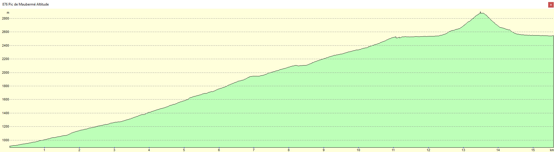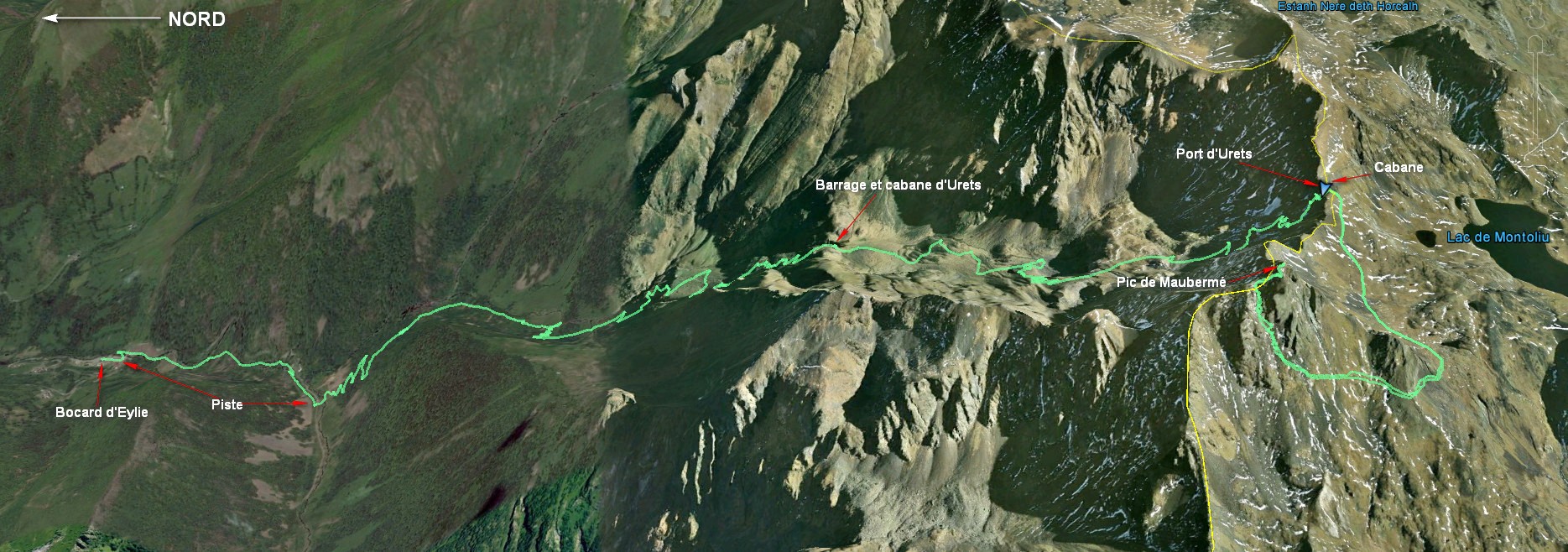 Bocard d'Eylie 910 m - Barrage d'Urets 1947 m - Port d'Urets 2512 m - Pic de Maubermé 2880 m - Port d'Urets 2512 m