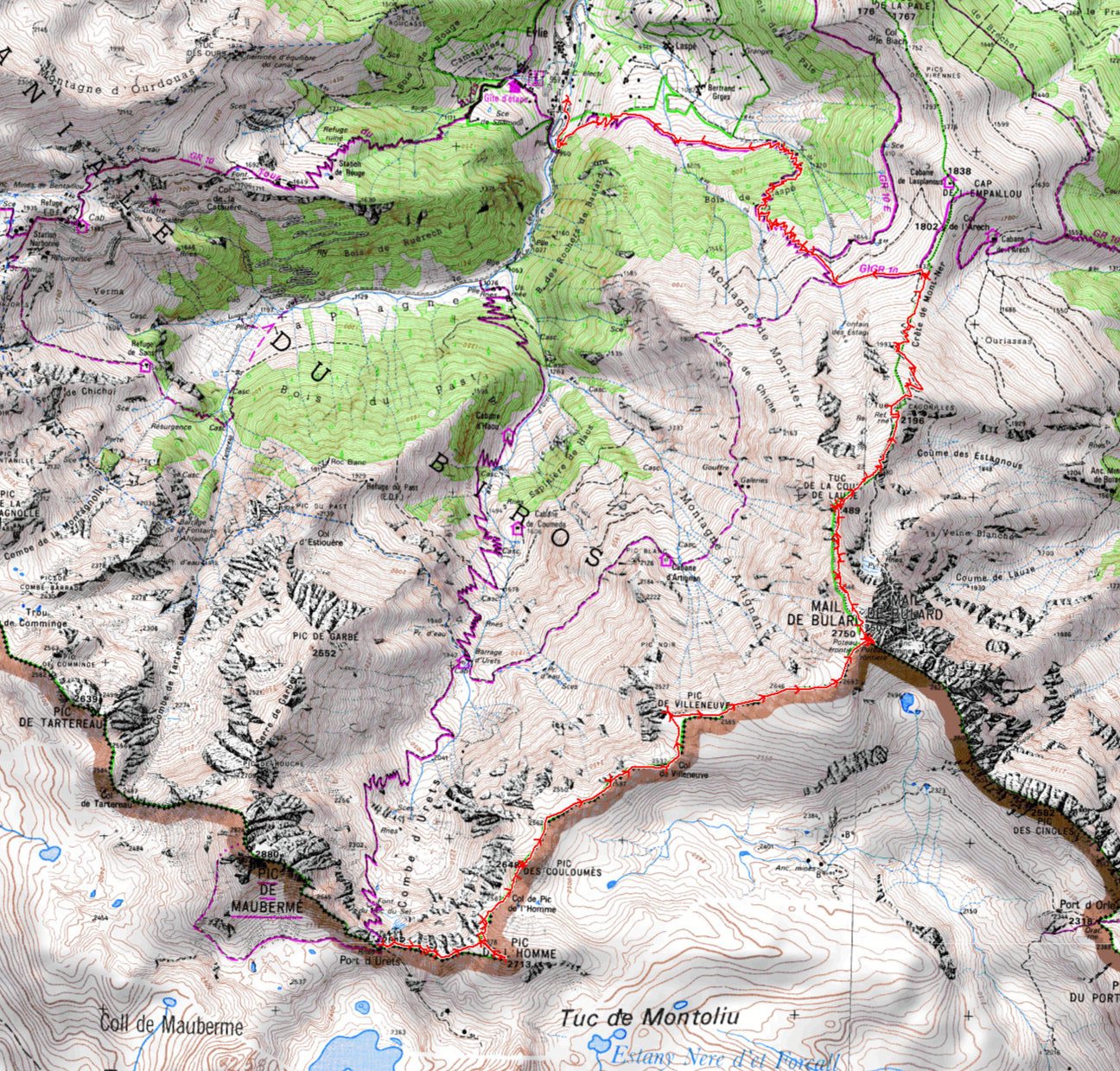 Port d'Urets 2512 m - Pic de l'Homme 2713 m - Col de Pic de l'Homme 2567 m - Pic des Couloumès 2648 m - Col de Villeneuve 2532 m - Pic de Villeneuve 2593 m - Mail de Bulard 2750 m -