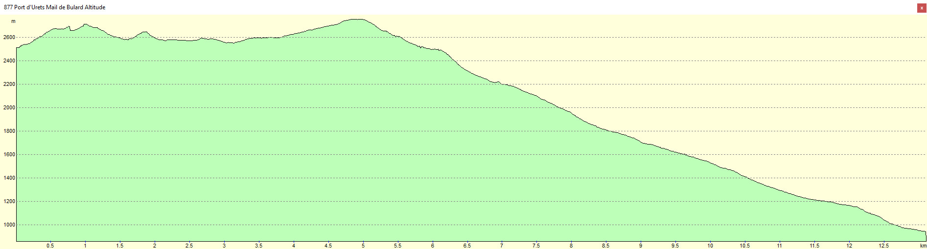 Du Port d’Urets partir vers l’est sur la crête frontière en direction du Pic de l’Homme que l’on atteint assez rapidement. Du Pic de l’Homme revenir vers l’ouest toujours en suivant la frontière et obliquer au nord-ouest, descendre au mieux au Col de l’Homme, assez raide. Ensuite le parcours jusqu’au Mail de Bulard en passant par les différents pics ne présente pas de difficulté.