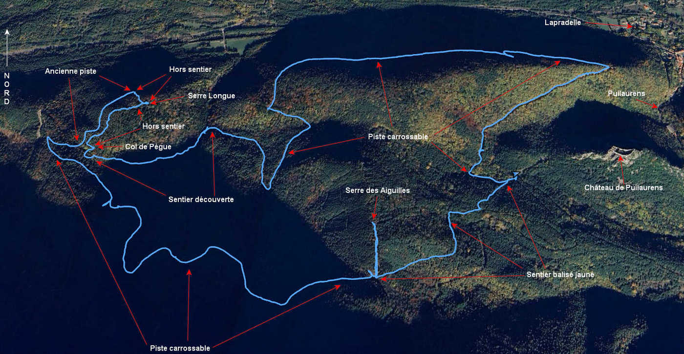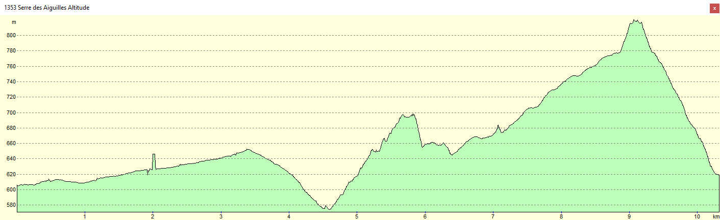 Col 605 m - Sentier découverte 569 m - Col de Bègue 644 m - Serre Longue 698 m - Col 774 m - Serre des Aiguilles 815 m - Col 605 m