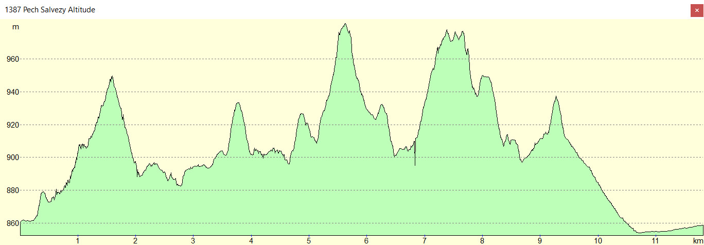 Pech Salvezy 983 m - Sarrat de l’Etreuil 941 m - D120 857 m - Maison forestière des Ombres 860 m