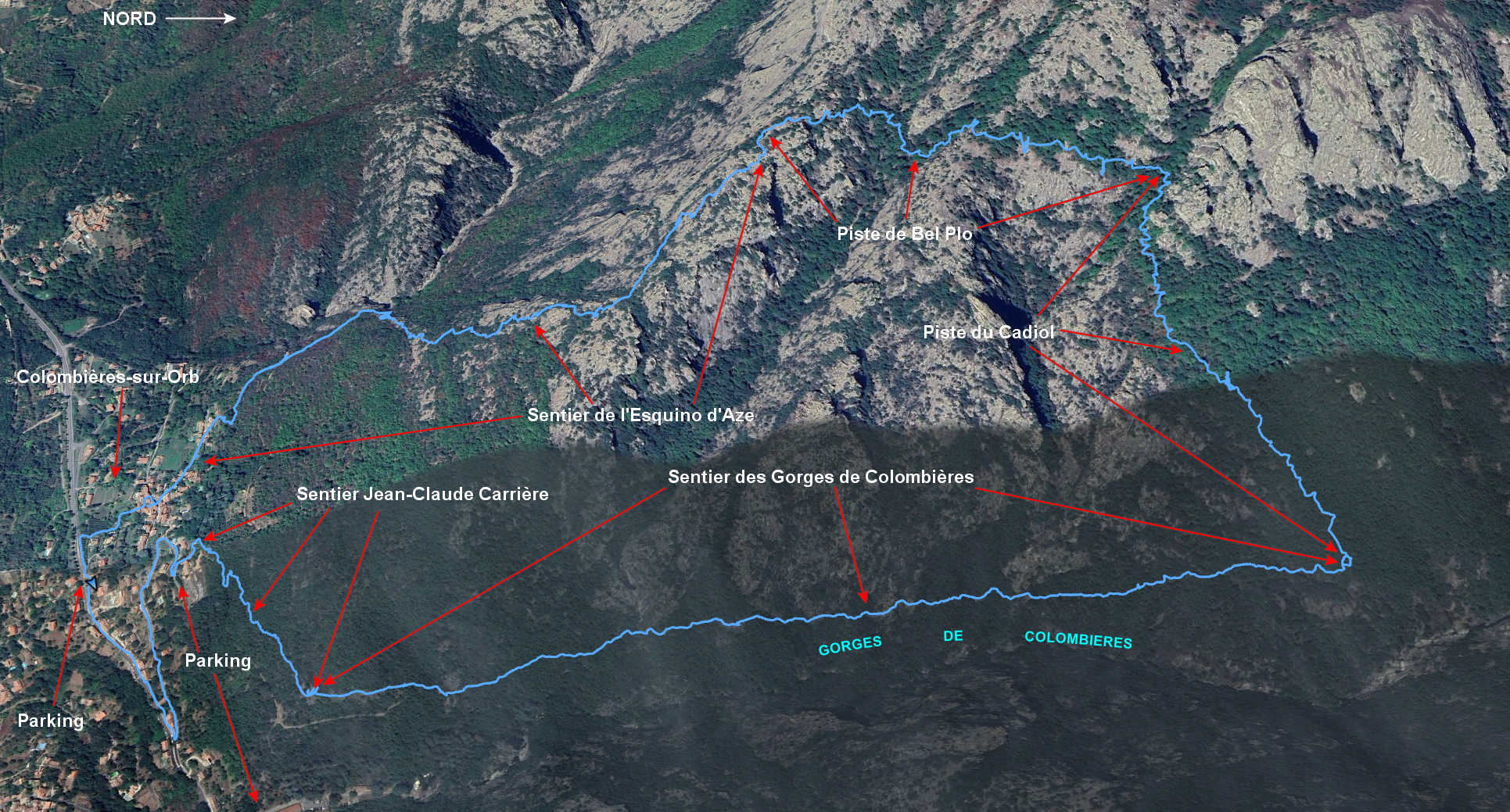 Colombières-sur-Orb 200 m - Sentier Jean-Claude Carrière 250 m - Sentier des Gorges de Colombières 315 m - Piste du Cadiol 535 m - Piste de Bel Plo 770 m -