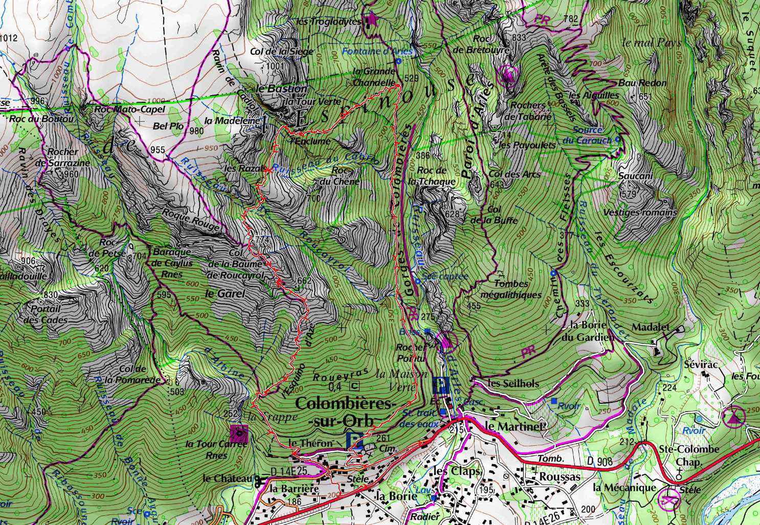 Col de la Baume de Roucayrol 774 m - Colombières-sur-Orb 200 m