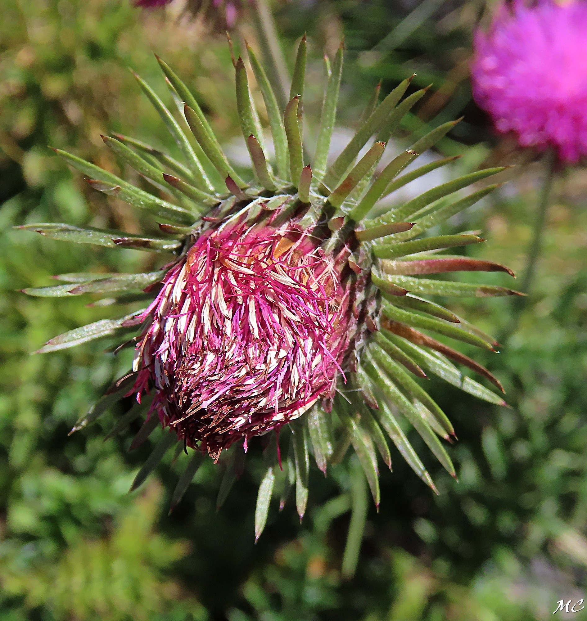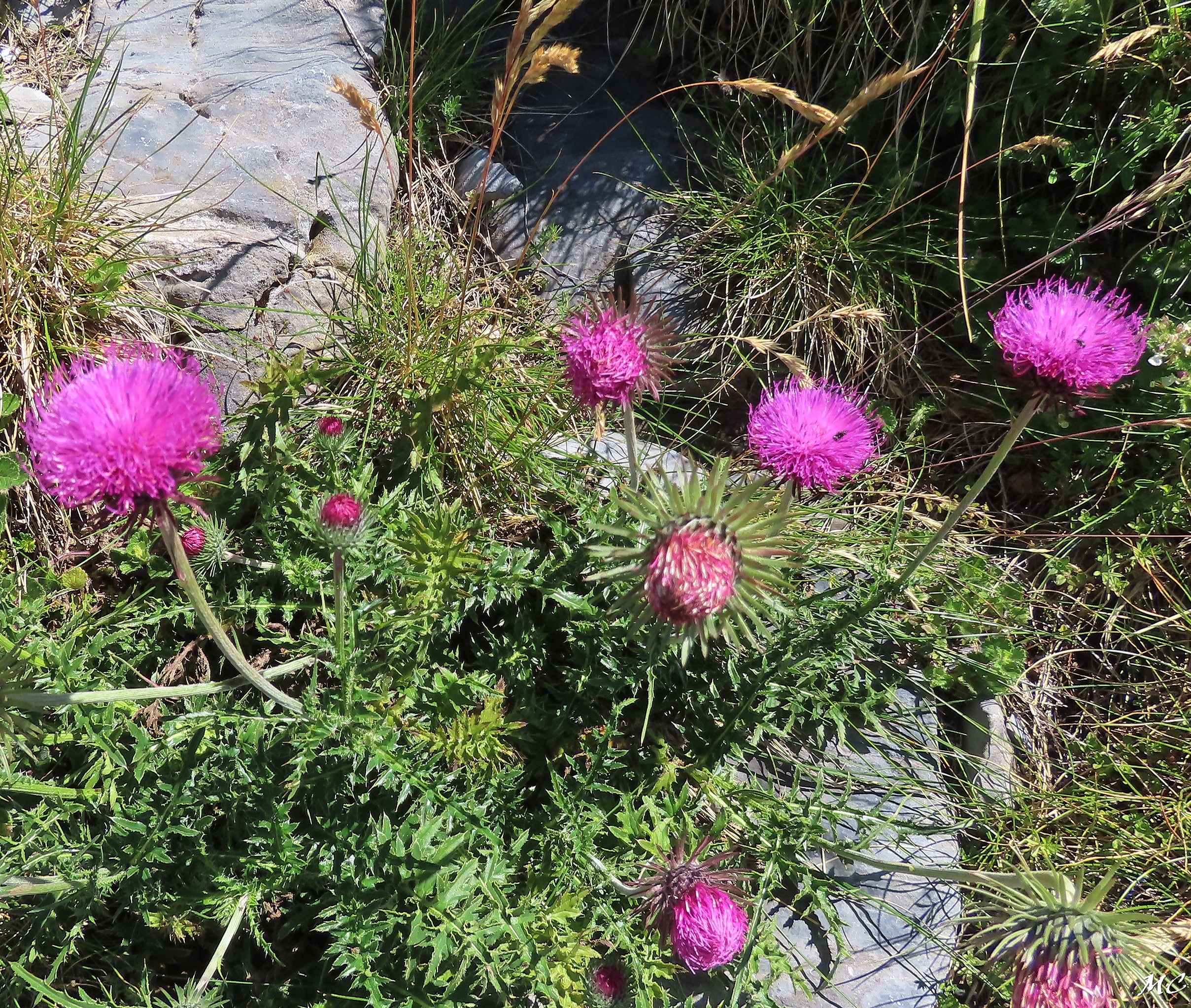 | Autres appellations | : | Chardon à pédoncules nus, Chardon décapité, Chardon défloré |
