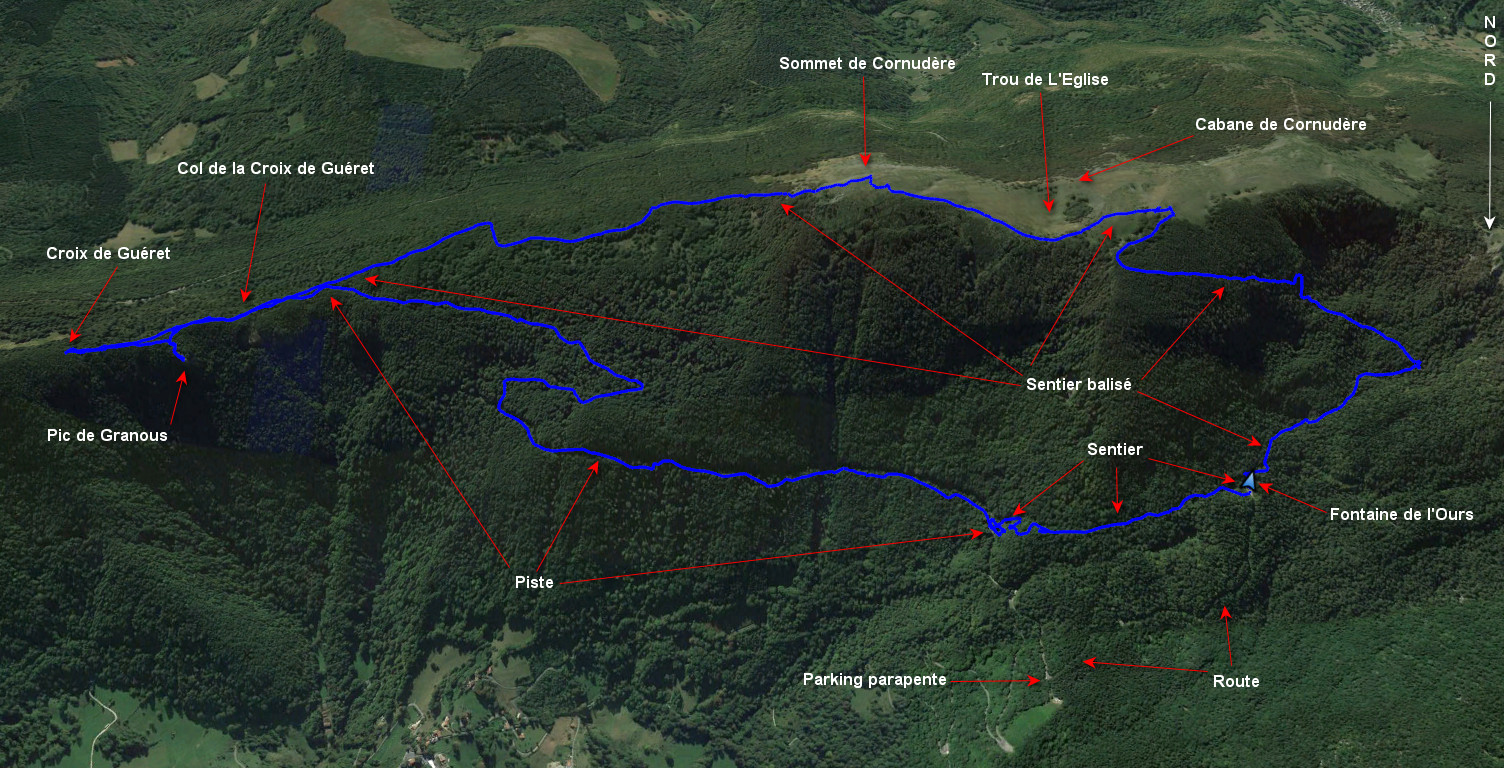 Pic de Granous 1224 m - Col de la Croix de Gueret 1217 m - Fontaine de l'Ours 1194 m
