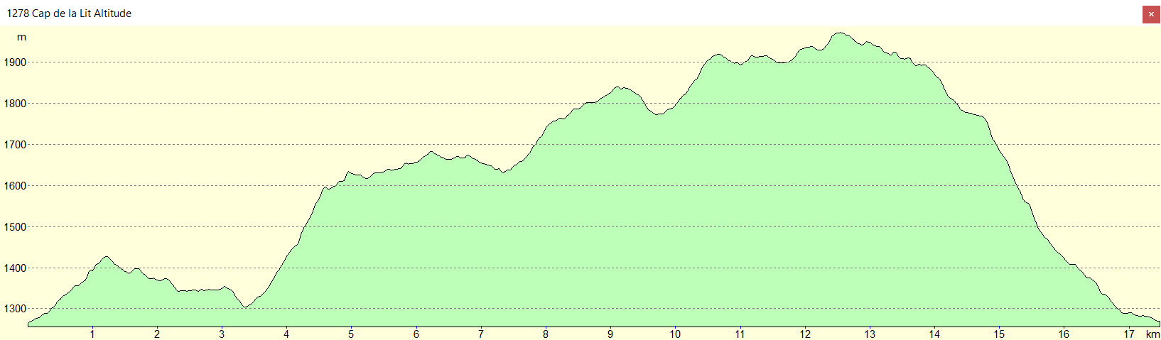Trace gpx : 1278 Pène d'Escalaruc - Sommet de Honteyde - Cap de la Lit - Cap du Pré de Rouquet