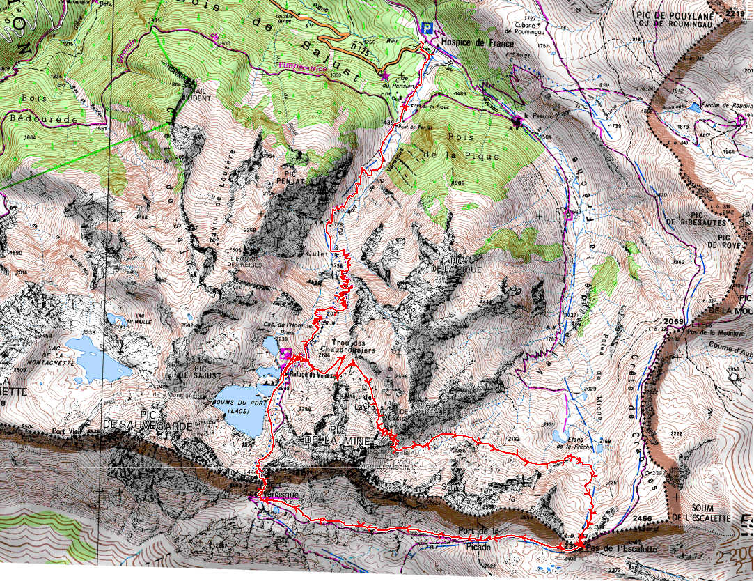 Pic de Sauvegarde 2738 m - Port de Vénasque 2444 m - Refuge de Venasque 2248 m