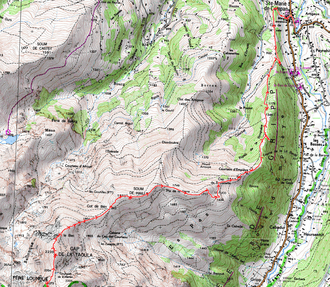 Trace gpx : 1045 Pène Lounque - Cap de la Taoula - Soum de Hailla