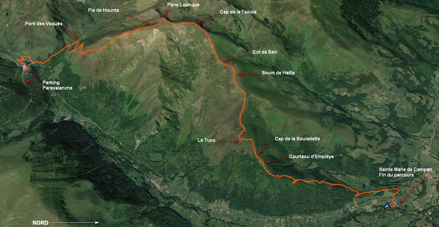 Cot dé Bén 1843 m - Soum de Hailla 1889 m - Pla de la Serre 1746 m - Le Tuco 1624 m - Cap de la Souladette 1513 m - Coutaou d'Empièye 1450 m - Sainte Marie de Campan 845 m