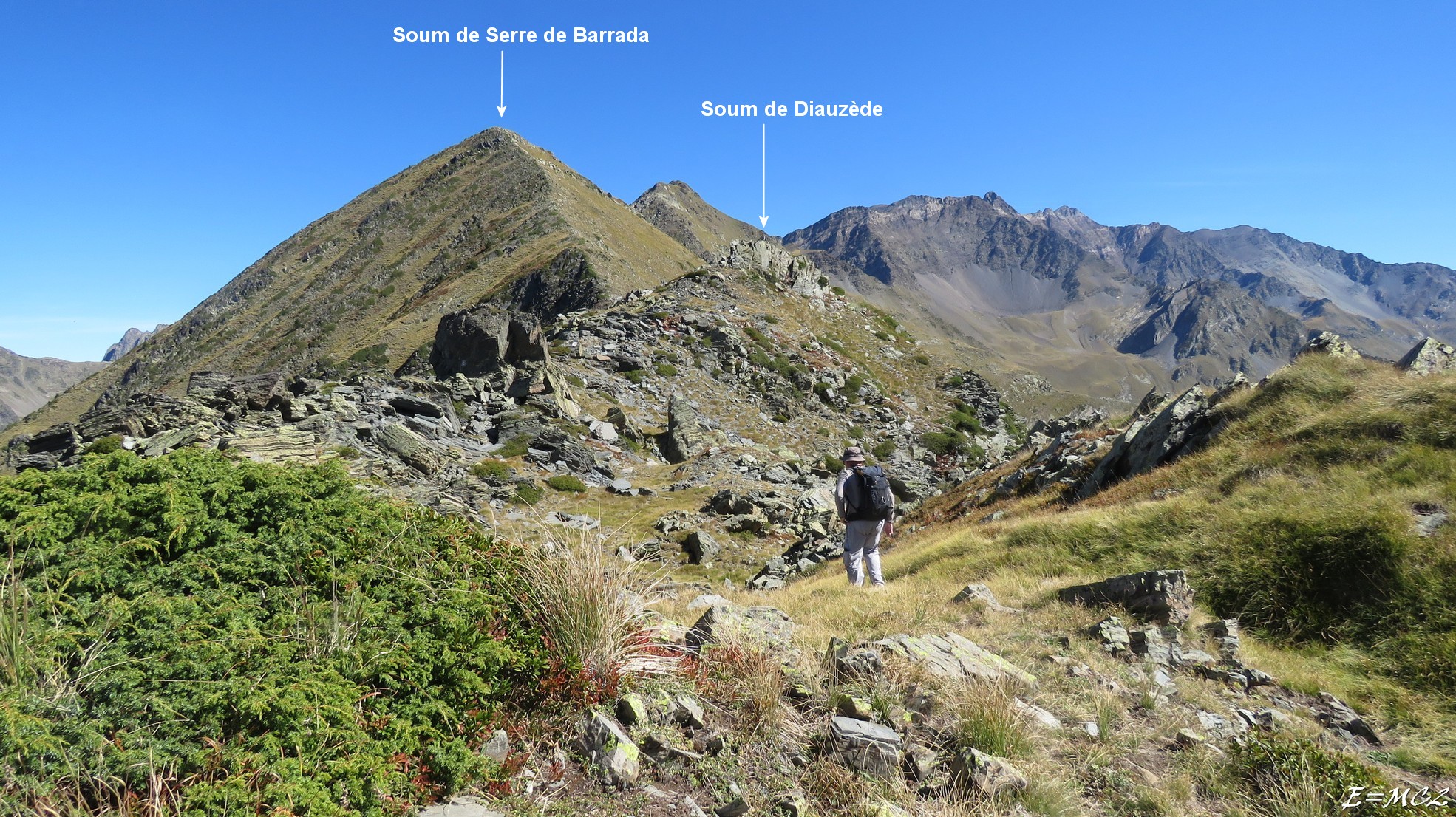 Du Soum de Diauzède, poursuivre sur la crête, franchir une partie rocheuse où l’aide des mains est utile et remonter l’arête facile du Soum de Serre de Barrada.