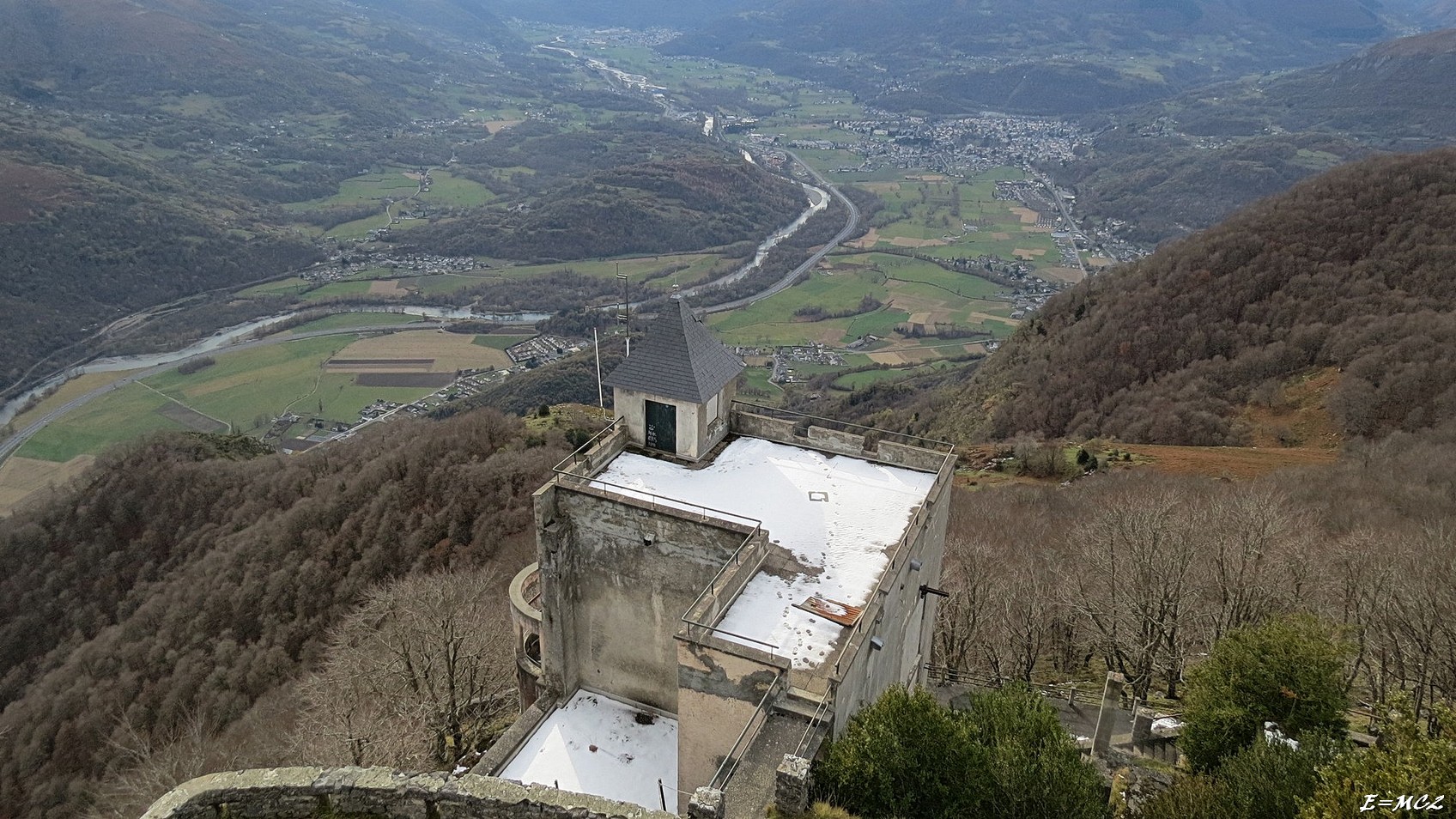 Sur le rondpoint qui fait suite à la sortie, laisser la première route à droite et prendre l’entrée de l’Aire de la Porte des Vallées des Gaves, et au lieu de rentrer sur le parking prendre la petite route sur la droite.