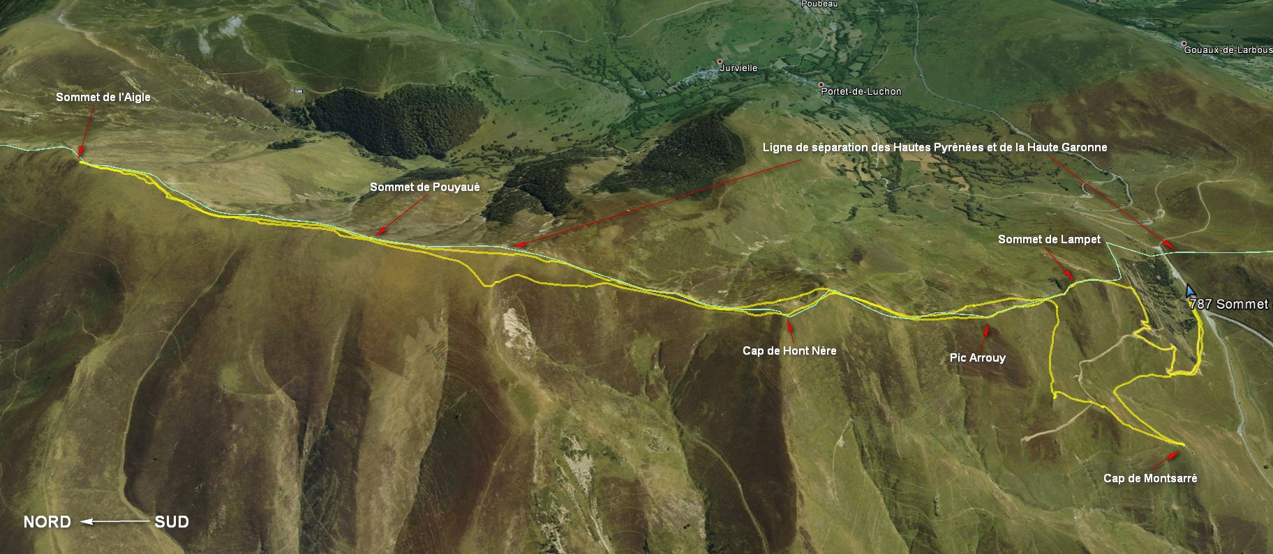 Trace gpx : 787 Cap de Hont Nère - Sommet de Pouyaué - Sommet de l'Aigle - Cap de Montsarré