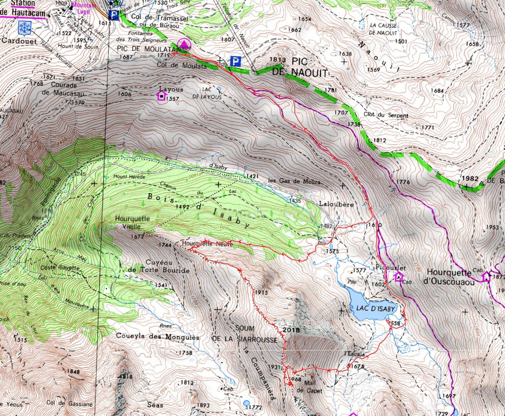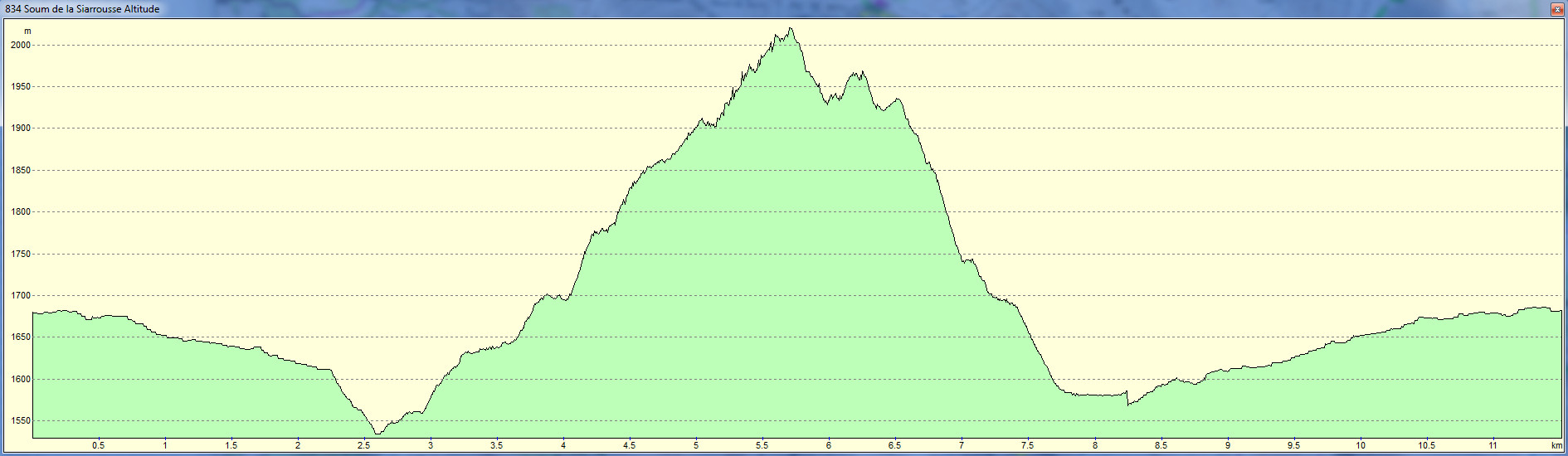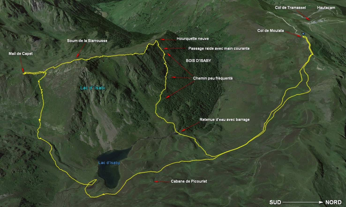Col de la Moulata 1680 m - Barrage 1540 m - Hourquette Neuve 1780 m - Soum de la Siarrousse 2018 m - Col 1931 m - Mail de Capet 1968 m - Col 1931 m -