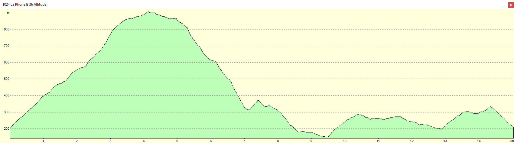 | ↗ | : | 930 m | / | Terrain | : | Piste, sentier, hors sentier |