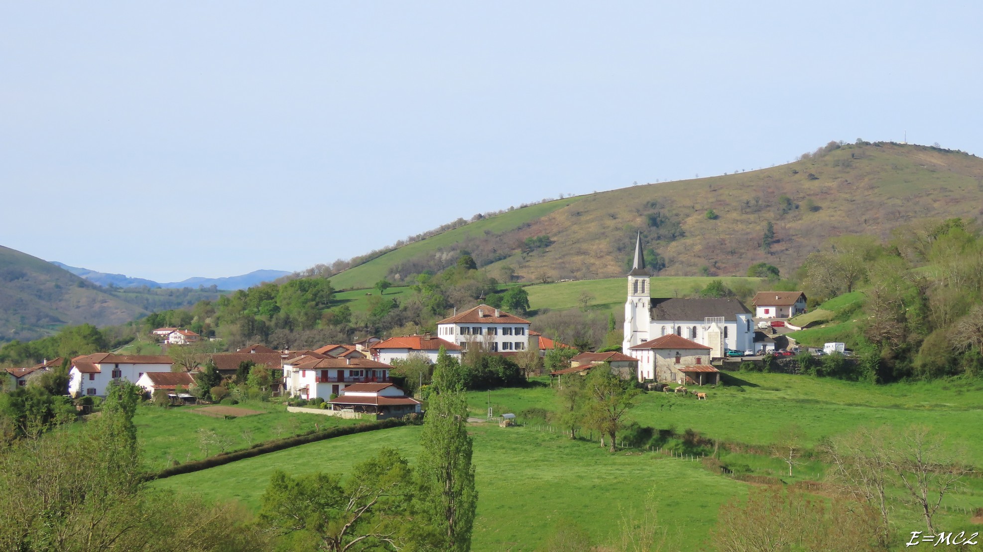 Sortir du parking du fronton et prendre la première route à gauche. Après 600 mètres, on rejoint le GR 65* au point « Monument – 157 m ». Suivre le GR sur 5,5 kilomètres jusqu’à la chapelle de Soyarza, en passant par le hameau d’Haranbeltz.