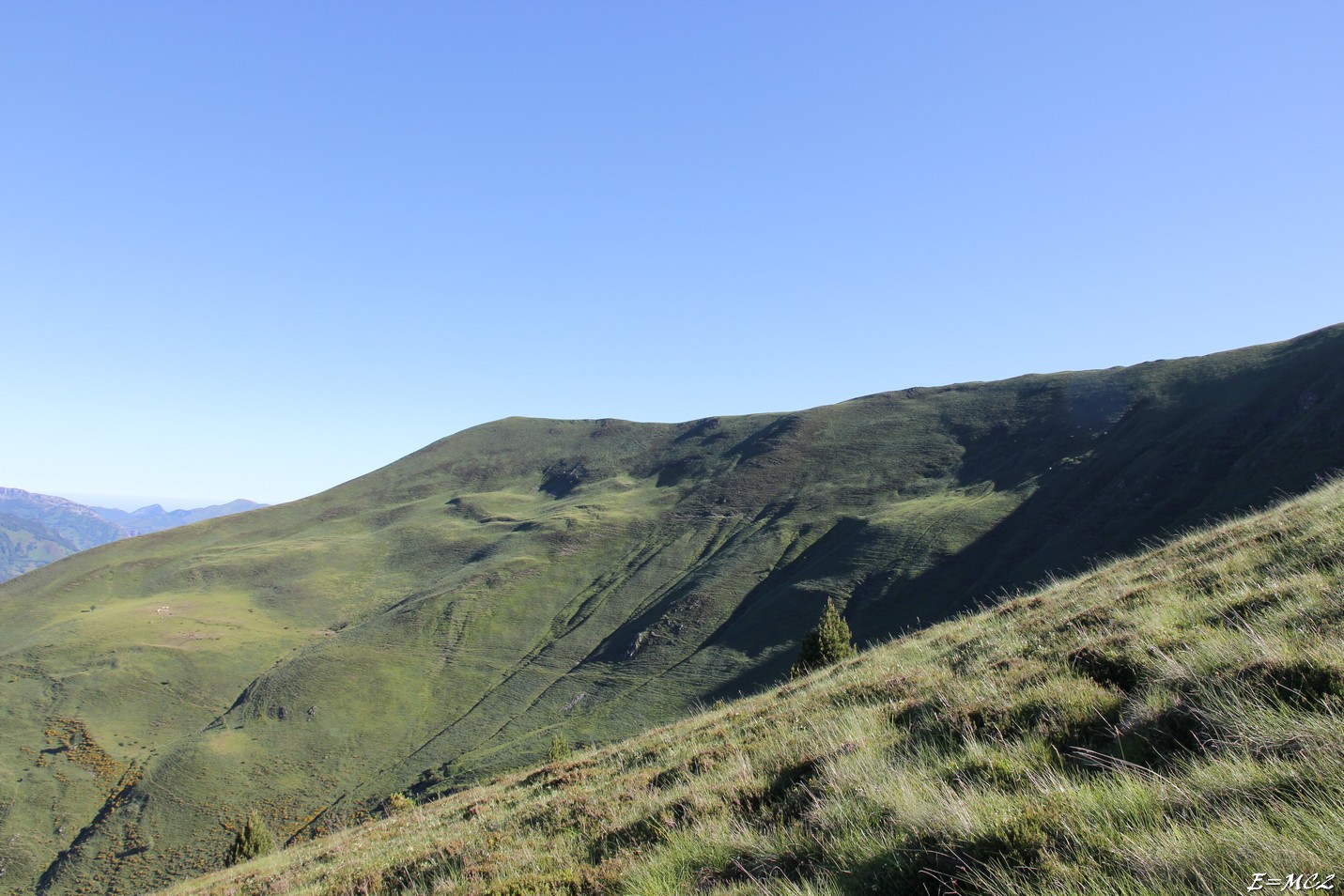 Prendre le chemin caillouteux dans le creux du virage en direction du refuge de Larry. Les cabanes et le refuge de Larry sont sur un petit plateau. En rentrant sur ce plateau prendre sur la gauche. Il y a de multiples sentes animales parallèles, deux sont plus marquées prendre celle du haut. On rejoint le Soum de Lagaube par une longue traversée de 3km environ et une prise d’altitude très progressive.