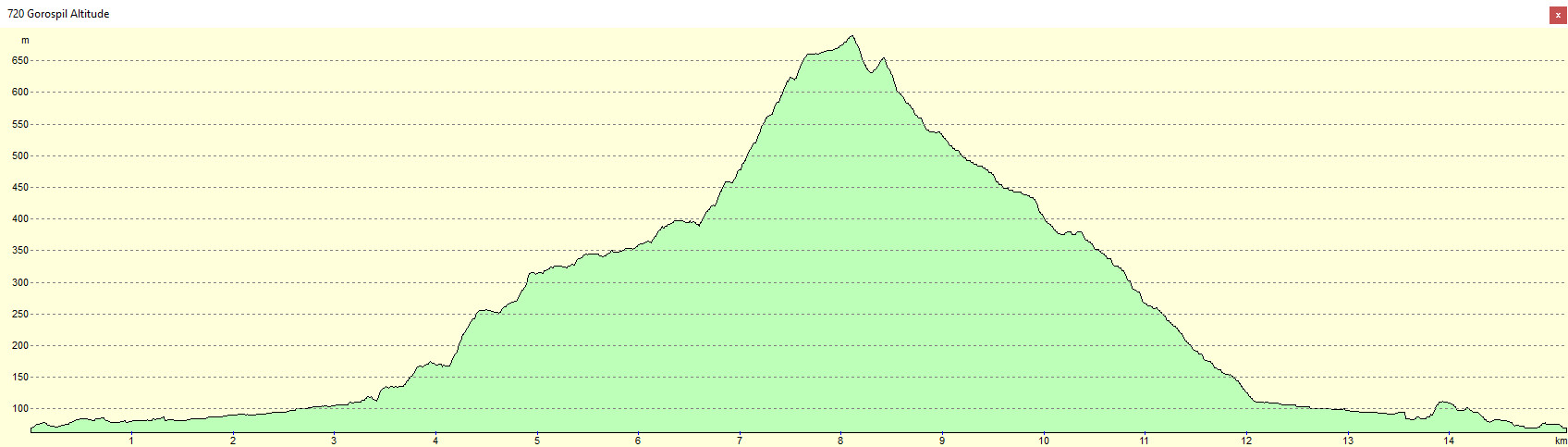 | ↗ | : | 680 m | / | Terrain | : | Piste, sentier, hors sentier, crête |