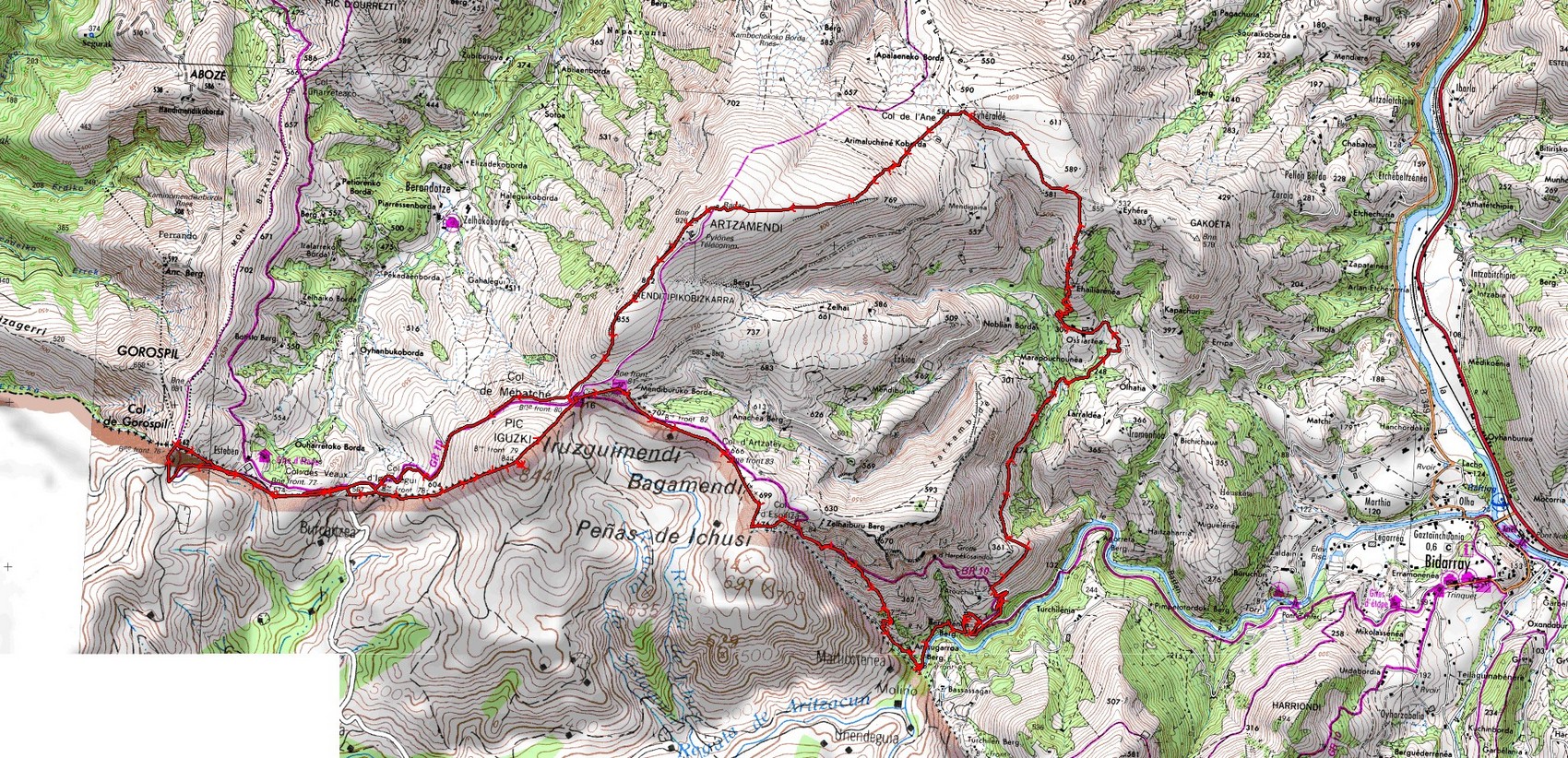 Col de Gorospil 662 - Col de Veaux 567 m - Col d'Iguzkiégui 549 m - Pic Iguzki - Col de Méhatché 725 m - Col d'Artzatey 666 m -