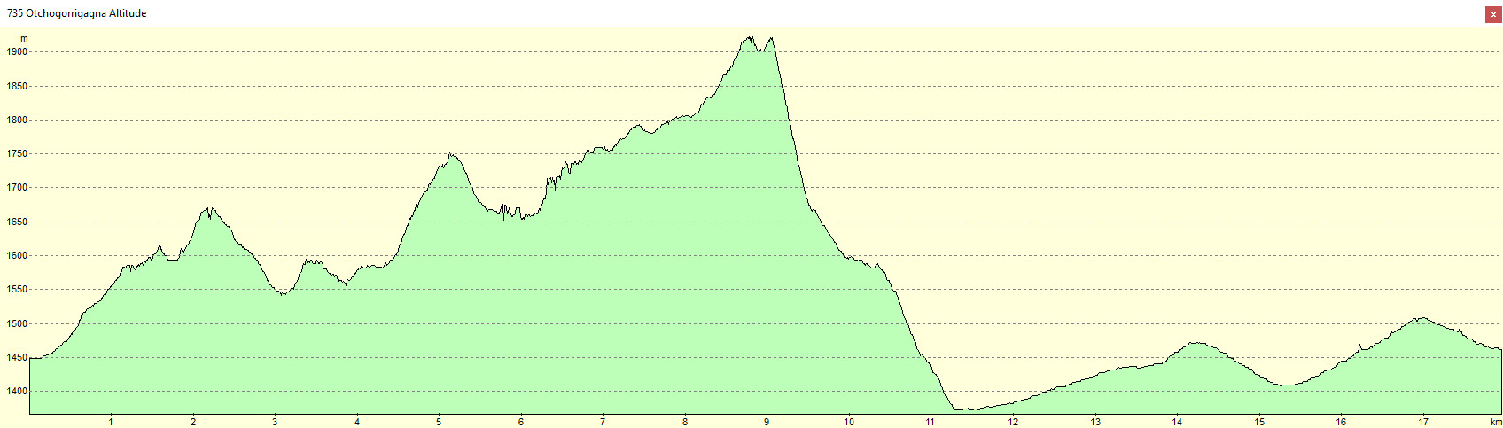 Otchogorri Chipia 1794 m - Col 1780 m - Otchogorrigagna 1923 m - Uthurourdinetako Portilloua 1664 m - Cayolar d'Ardane Gagnekoa 1373 m - Col d'Aralteko 1425 m - Port de Larrau 1570 m