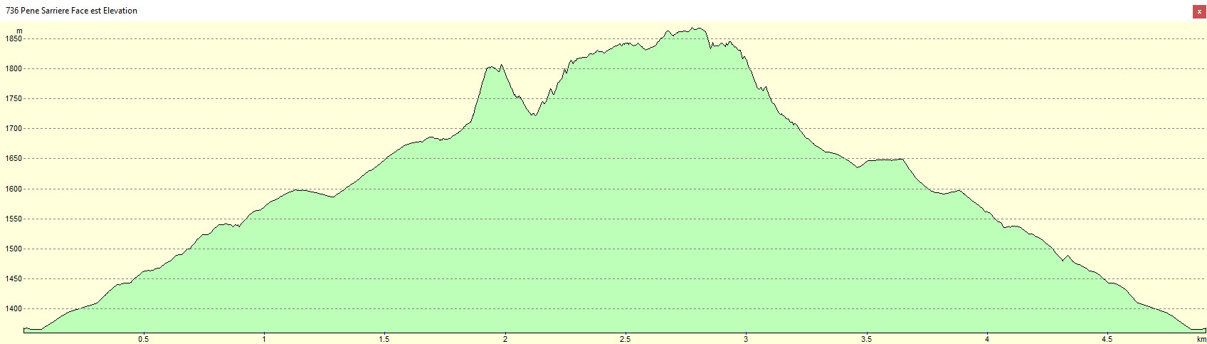 Gourette 1350 m - Départ voie 1690 m - Pène Sarrière 1944 m - Piste 1640 m - Gourette 1350 m