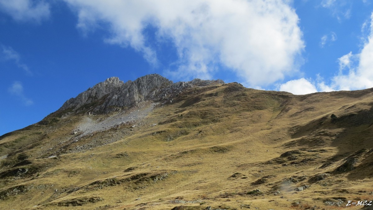 Retour par le même chemin. Une solution différente pour le retour est possible. En descendant du sommet, une fois revenu au col 1974 m, on peut descendre sur la gauche par les cabanes de Pédain. Pentes raides en herbes, traces de sentiers.