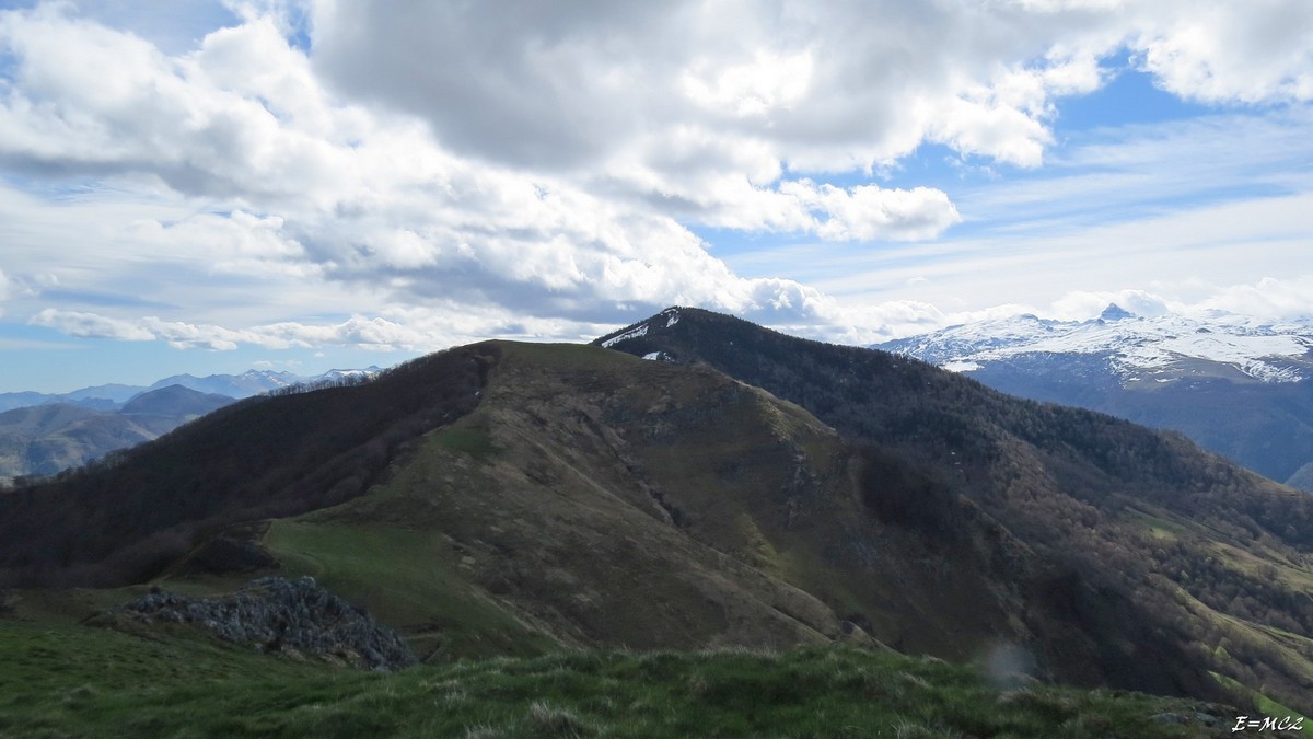 Revenir sur le col et continuer sur la crête jusqu’au Col de Lacurde en passant par le Pic d’Igountze (borne). Du Col de Lacurde, la montée vers le Pic d’Arbouty, est moins aisé, mais à part quelques pas où il est nécessaire de s’aider avec les mains, il n’y a rien de très difficile. Le plus désagréable a été la traversée d’une zone d’arbres couchés, cassés etc…