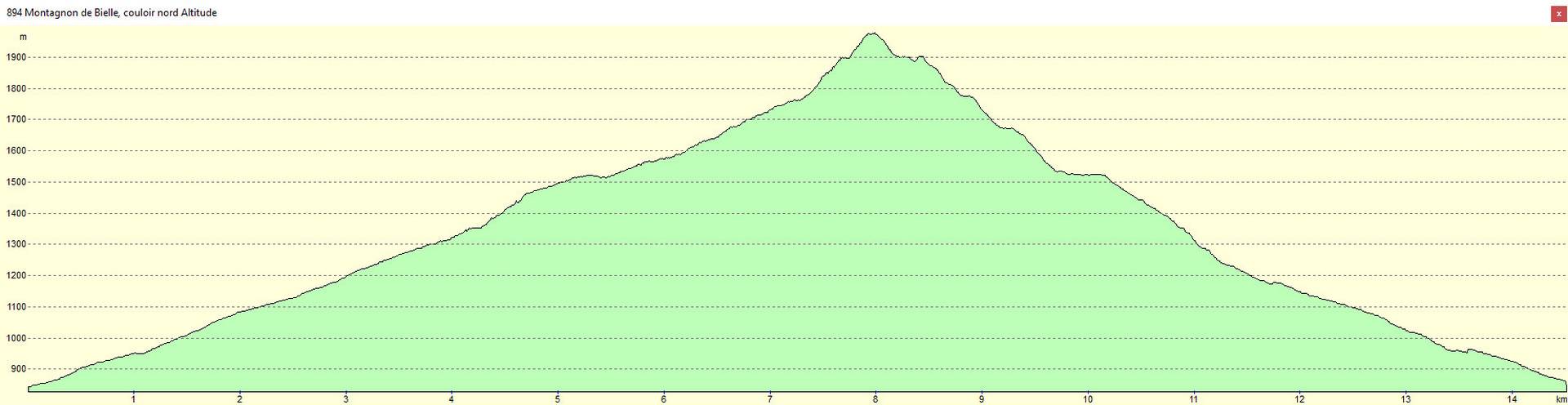 Trace gpx : 894 Montagnon de Bielle, Couloir Nord-Arête Sud