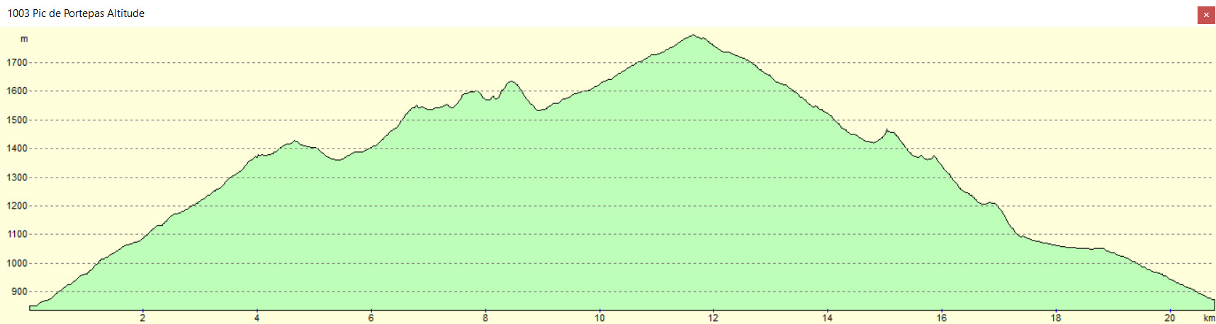 - Puig del Rocater 1601 m - Pic del Torn 1632 m - Coll del Torn 1540 m - Pic de Portepas 1798 m - Roc de Peirafita 1535 m - Col 1420 m -