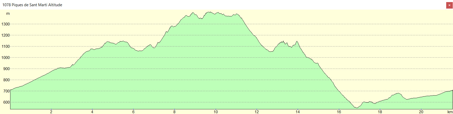 Piques de Sant Marti 1402 m - Coll Cerda 1050 m - Montalba 543 m - Route 631 m - Correc de la Grifa 710 m