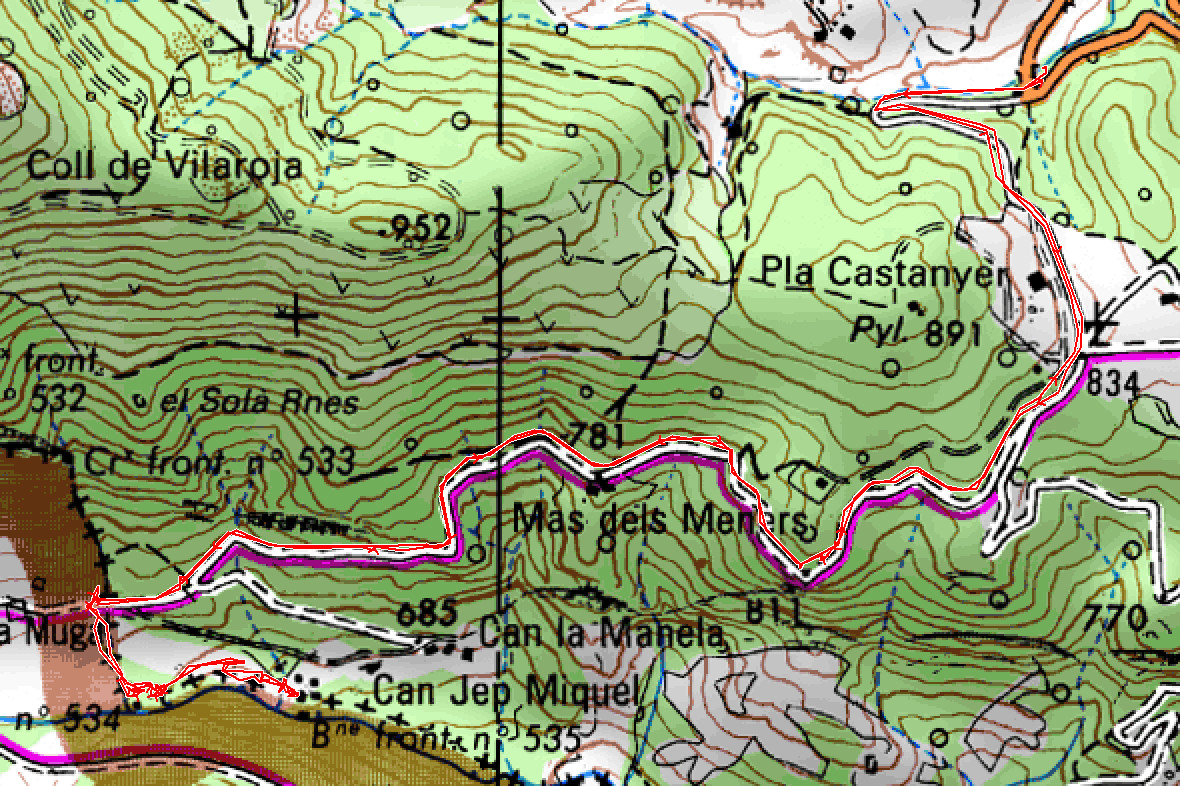 Pla Castanyer 834 m - Portail 720 m - Borne 534 700 m - Borne 535 680 m - Pla Castanyer 834 m