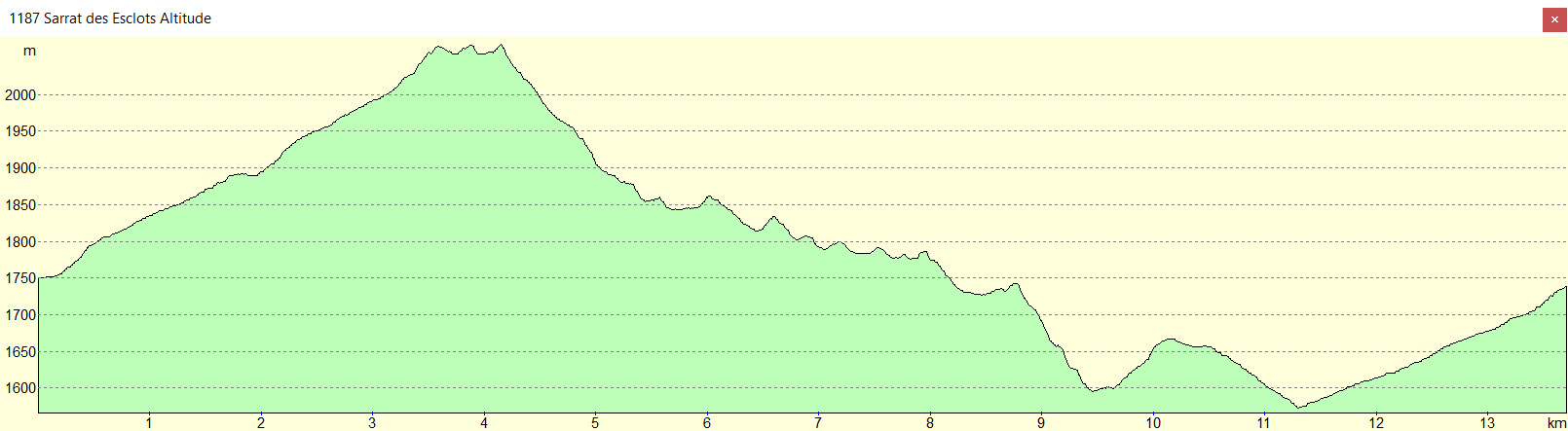 Puyvalador 1750 m - Jasse Peyrou 2020 m - Sarrat des Esclots 2067 m - Pla des Tourettes 1840 m - Roc de la Couillade del Peyroulet 1831 m - Roc du Taillat del Bossut 1801 m -