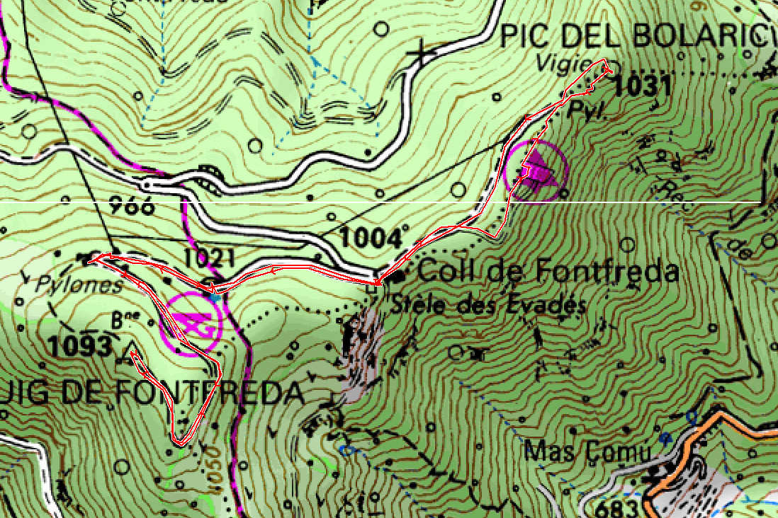 Coll de Fontfreda 1004 m - Puig de Fontfreda 1093 m - Coll de Fonfreda 1004 m - Aire de décollage 1025 m - Pic del Bolaric 1031 m - Coll de Fontfreda 1004 m