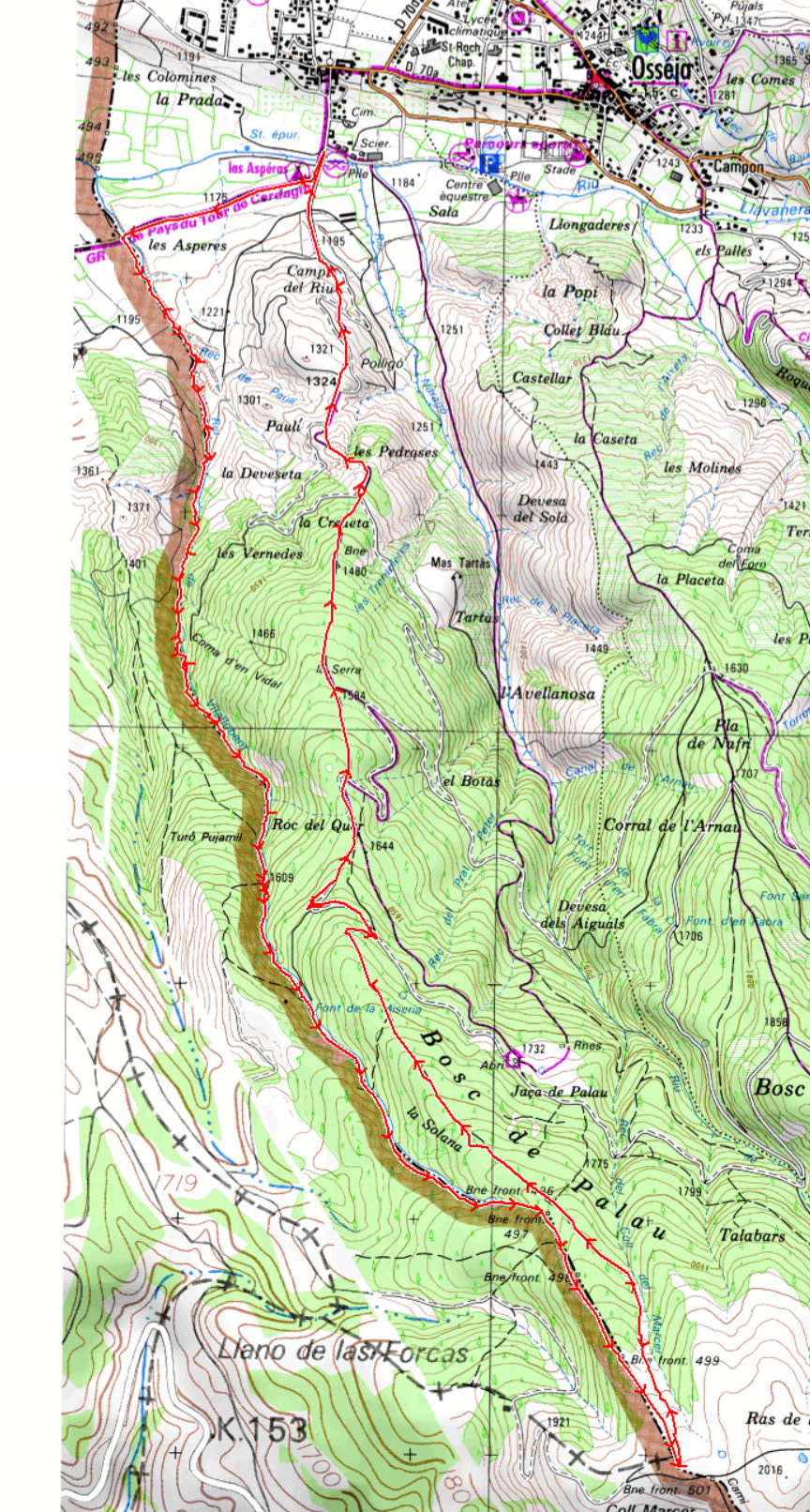 Osseja 1170 m - Les Aspères 1180 m - Borne 496 1830 m - Borne 500 1980 m - La Serra 1584 m - La Creueta 1450 m - Osseja 1170 m