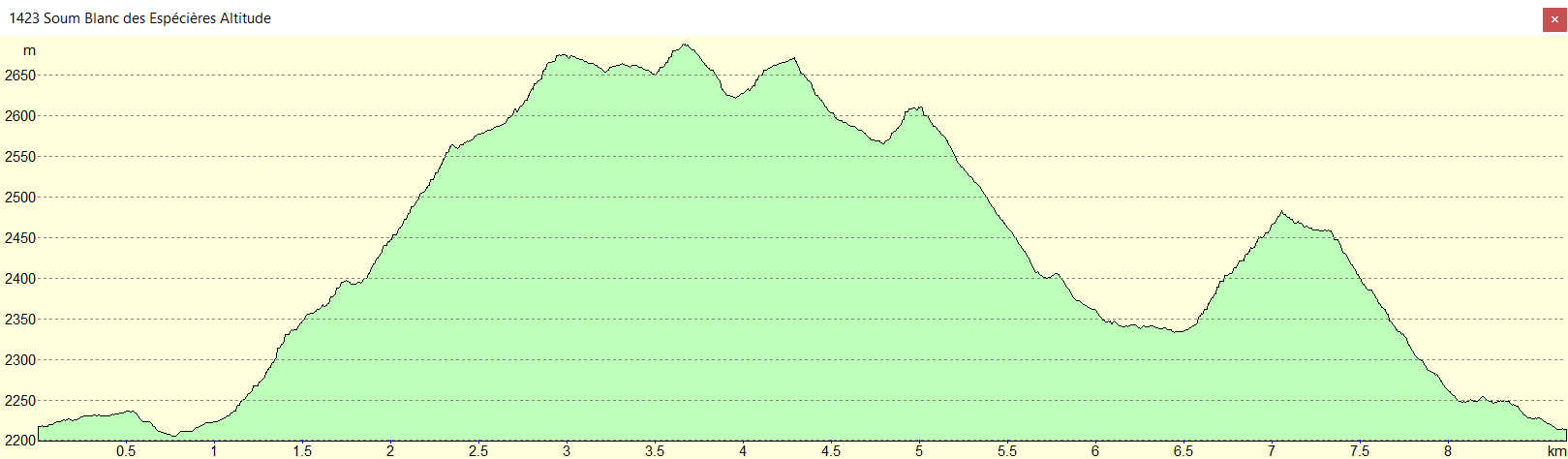 Trace gpx : 1423 Soum Blanc des Espécières - Pic de Saint-André - Pic Entre les Ports