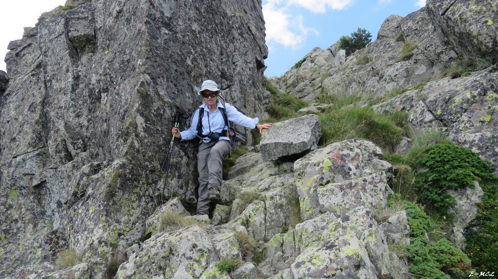 Du Madres suivre la crête vers l’est jusqu’au Roc Nègre. Entre les deux sommets il y a un petit passage en descendante nécessitant l’aide des mains, pas de I.