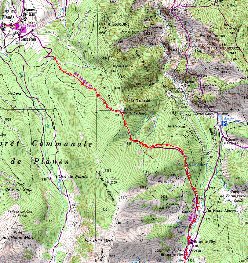 Coll d'en Bernat 2616 m - Pla dels Bocs 2200 m - Jassa Grossa 1826 m - Pla des Cedelles 1911 m - Forêt de Planès 1740 m