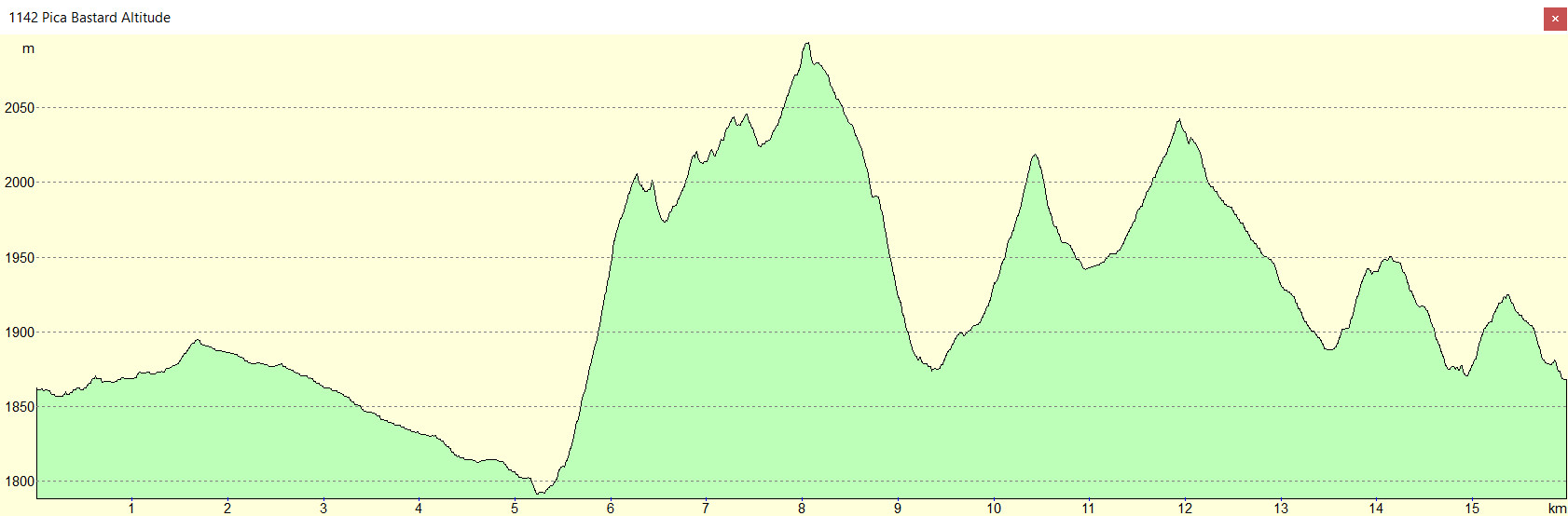 Du sommet se diriger au nord-ouest, passer un col et monter au sommet du Roc de les Combes. Même type de terrain que précédemment sans grande difficulté en choisissant son cheminement. Tout en conservant la même direction et au plus près de la crête poursuivre jusqu’à la Pica Bastard en évitant le point 2062 m par la droite.
